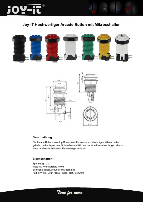 Arcade Button mit Mikroschalte Urządzenie wejściowe Joy-it Arcade Button mit Mikroschalte 1 szt.