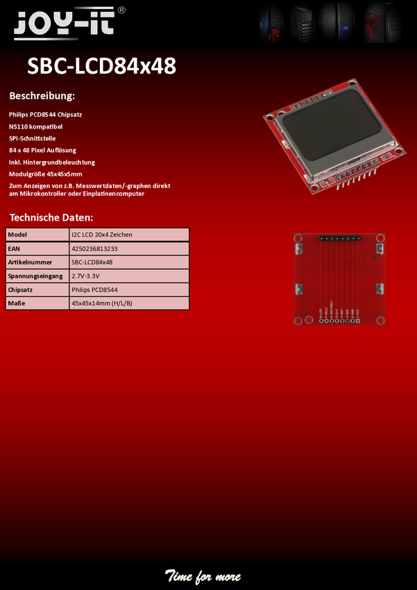 SBC-LCD84x48 Moduł wyświetlacza Joy-it SBC-LCD84x48
