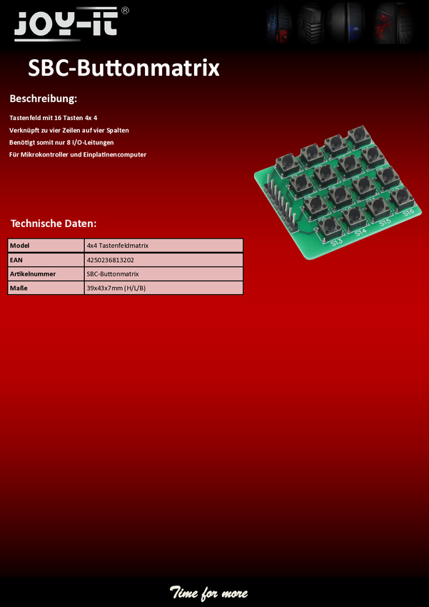 Moduł rozszerzeń Joy-it sbc-buttonmatrix 1 szt.