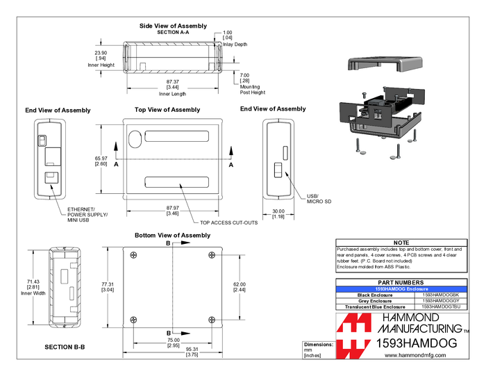 Obudowa do Beaglebone, czarna Hammond Electronics 1593HAMDOGGY