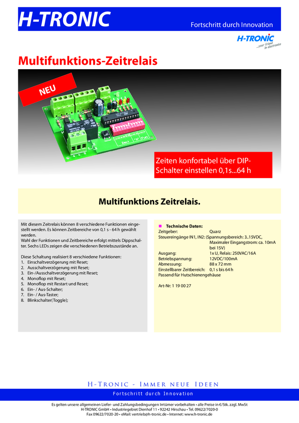 190027 Moduł przekaźnika czasowego H-Tronic 0,1 s - 63 h, 16 A / 250 V/AC