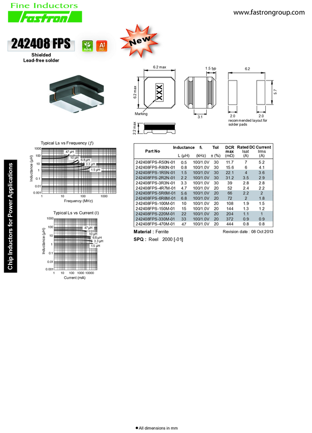 242408FPS-100M-01 Dławik SMD 242408FPS 10 µH Fastron 242408FPS-100M-01 1 szt.