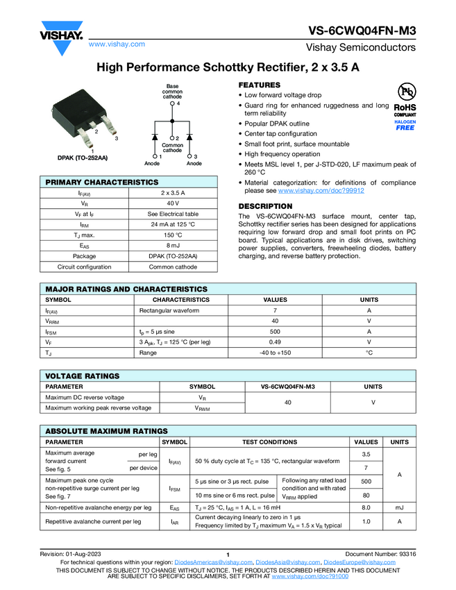 VS-6CWQ04FN-M3 High Performance Schottky Rectifier, 2 x 3.5 A