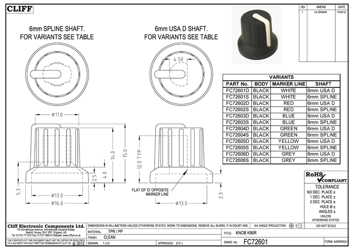 FC72604S Pokrętło Cliff FC72604S FC72604S, (Ø x W) 16 mm x 15.1 mm, 1 szt.