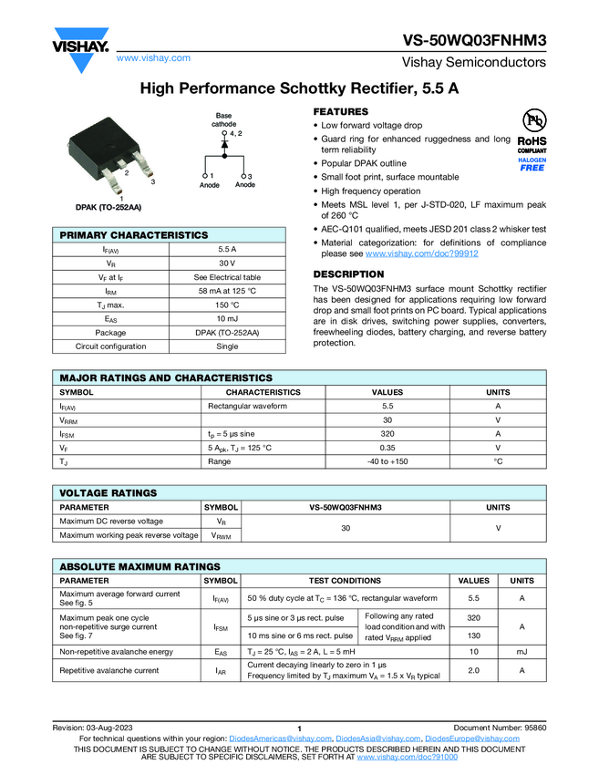 VS-50WQ03FNHM3 High Performance Schottky Rectifier, 5.5 A