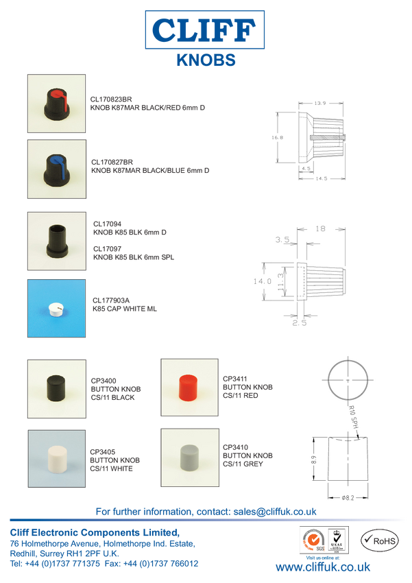 CP3405 Cliff CP3405 CP3405 Przycisk biały (Ø x W) 8 mm x 8 mm 1 szt.