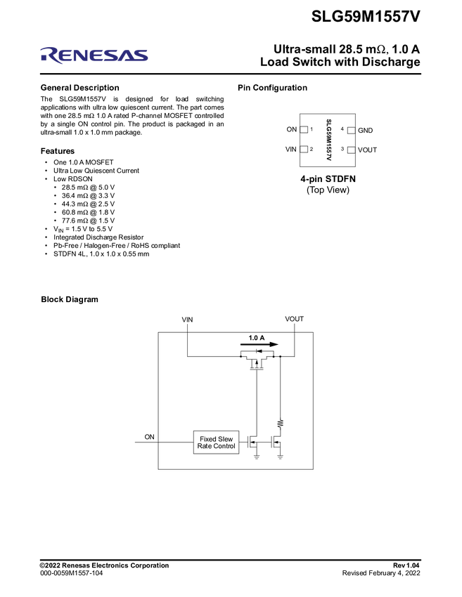 SLG59M1557V GreenFET Single P-Channel Load Switch