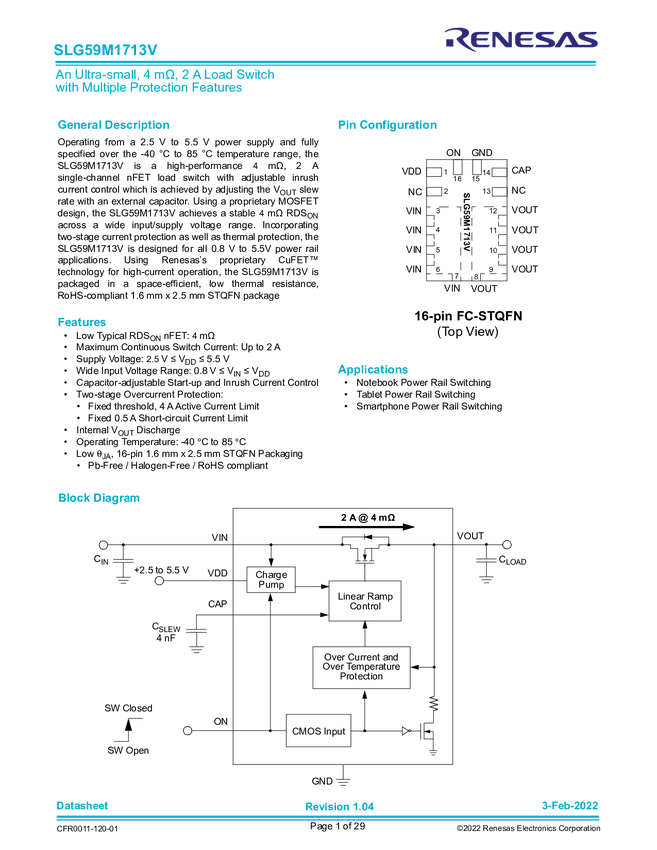 SLG59M1713V GreenFET Single N-Channel Load Switch
