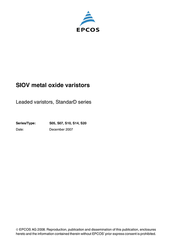 B72220S750K101 Warystor S20K75 120 V Epcos B72220S750K101, 1 szt.