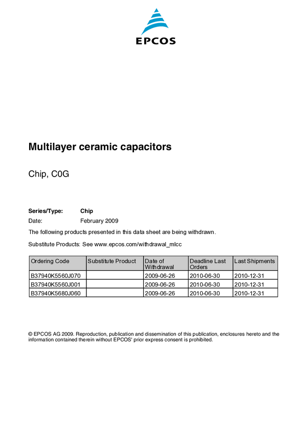 B37940-K5010-C860 Kondensator ceramiczny SMD Epcos KERAMIK-VIELSCH.-KOND., 0805COG1R8C050P0