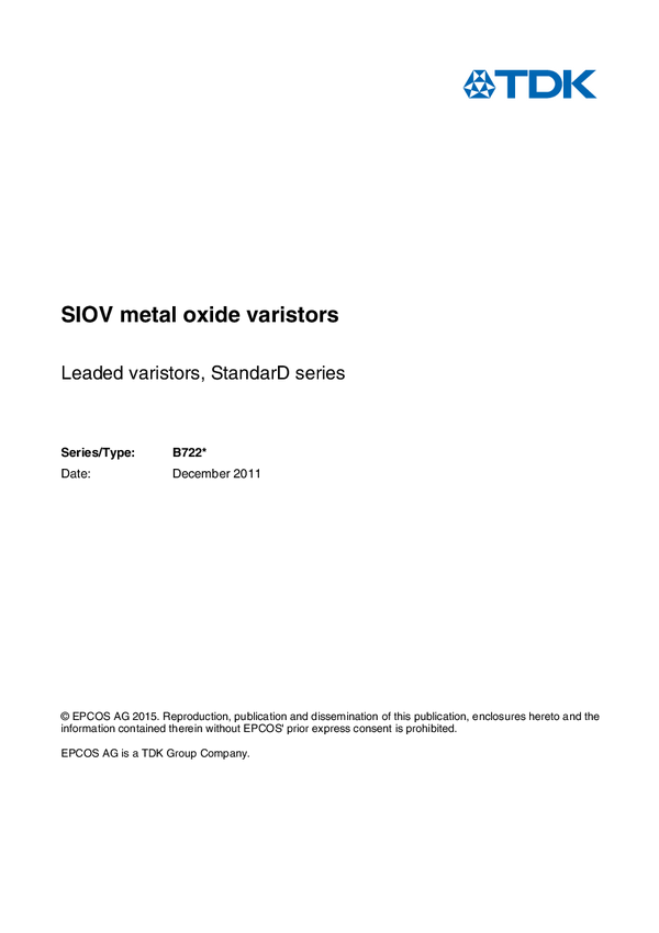 B72220S251K101 Warystor S20K250 Epcos, B72220S251K101, 390 V