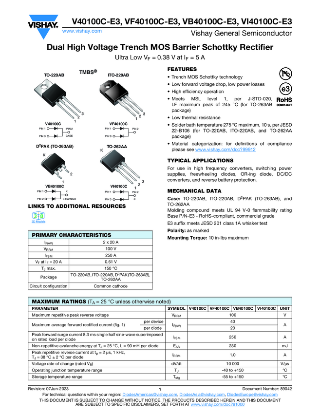 VF40100C-E3, VB40100C-E3, VI40100C-E3