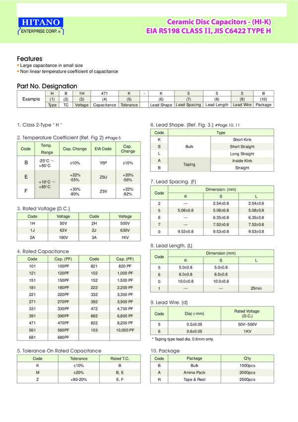 Kondensator ceramiczny płytkowy, RM 5,08 mm, 560 pF, 500 V,10%.