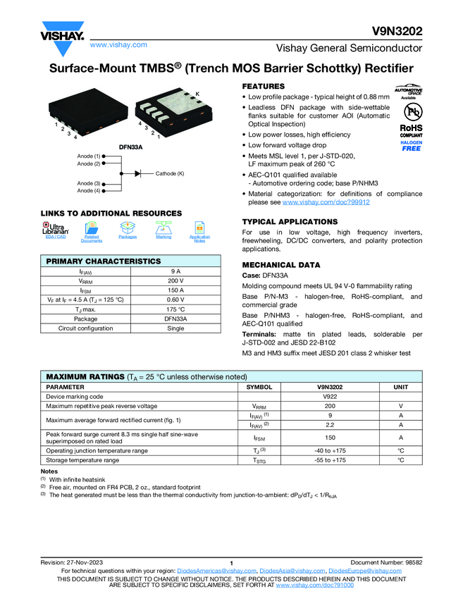 V9N3202 Surface-Mount TMBS® (Trench MOS Barrier Schottky) Rectifier