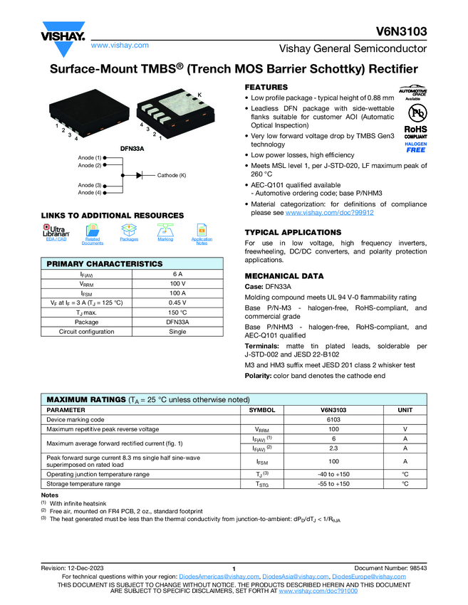 V6N3103 Surface-Mount TMBS® (Trench MOS Barrier Schottky) Rectifier