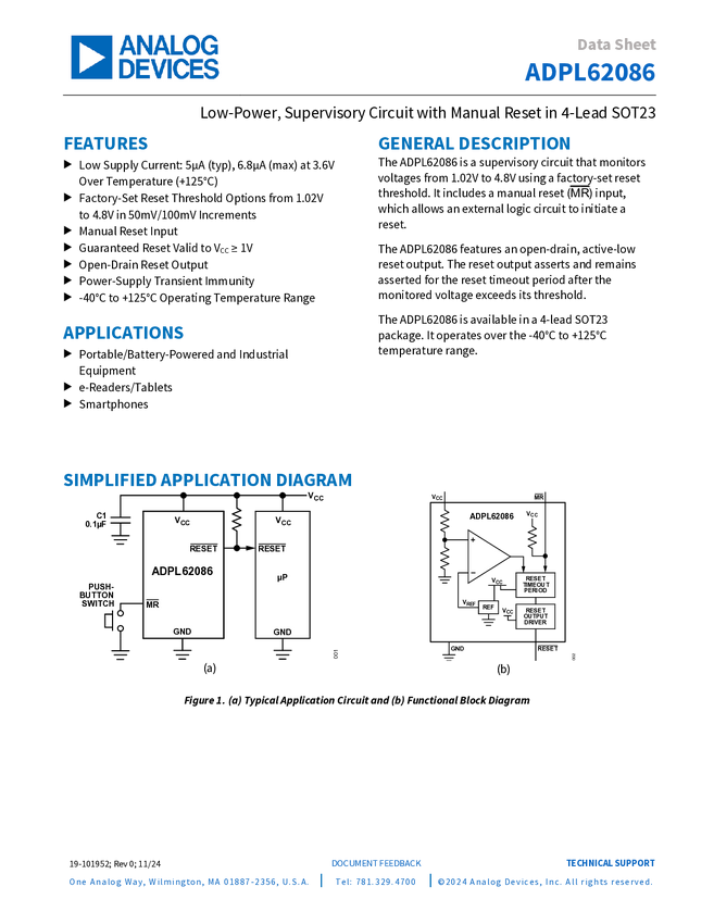 ADPL62086 Low-Power, Supervisory Circuit with Manual Reset in 4-Lead SOT23