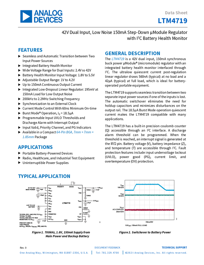 LTM4719 42V Dual Input, Low Noise 150mA Step-Down μModule Regulator with IC Battery...