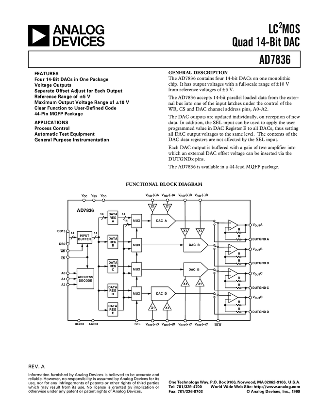 AD7836 Quad 14-Bit CMOS DAC on One Monolithic Chip