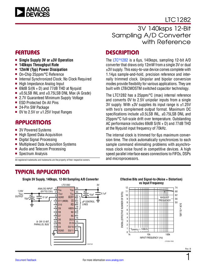 LTC1282 3V 140ksps 12-Bit Sampling A/D Converter with Reference
