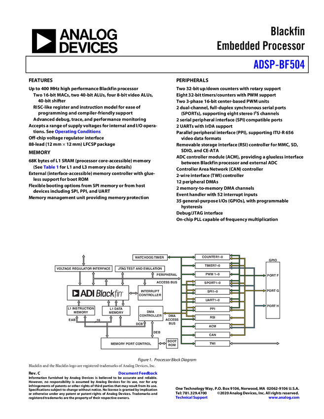 ADSP-BF504 Low Cost Blackfin with Optimized Peripheral Set for Industrial and General...