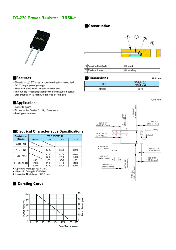 TR50FBD1280-H Rezystor mocy TR50FBD1280-H 128 Ω Radialny THD TO 220 50 W Weltron TR50FBD1...