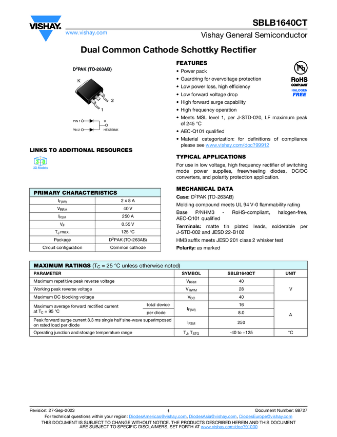 SBLB1640CT Dual Common Cathode Schottky Rectifier