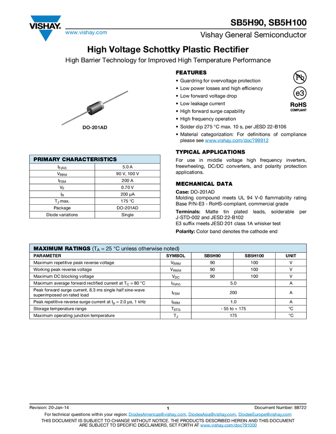 SB5H90 High Voltage Schottky Plastic Rectifier High Barrier Technology for Improve...
