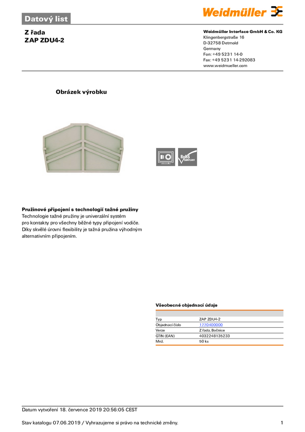 1770400000-50 Weidmüller 1770400000-50 Płyta zamykająca beżowy 50 szt.