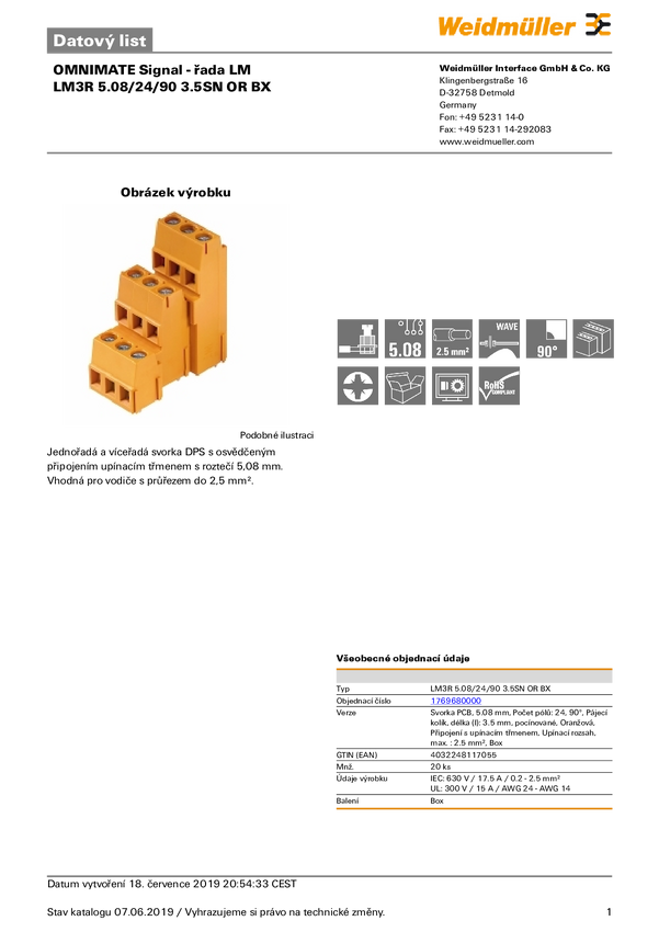1769680000 Weidmüller 1769680000 Terminal 3-poziomowy 2.5 mm² Ilość styków 24 pomarańc...