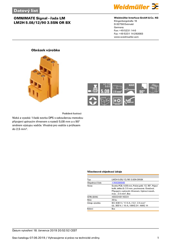 1769280000 Weidmüller 1769280000 Terminal dwupoziomowy 2.5 mm² Ilość styków 12 pomarań...