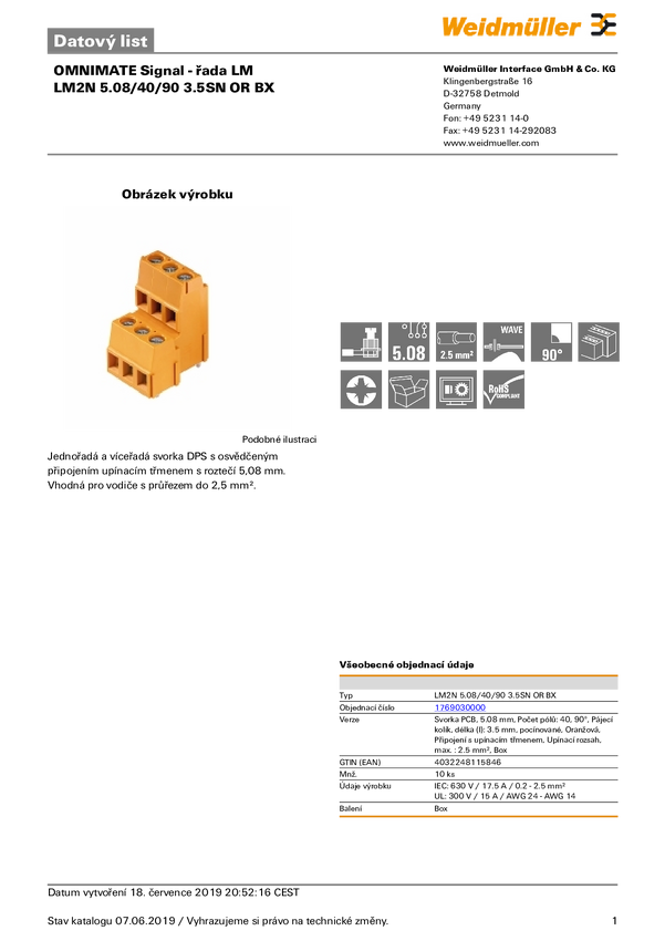 1769030000 Weidmüller 1769030000 Terminal dwupoziomowy 2.5 mm² Ilość styków 40 pomarań...