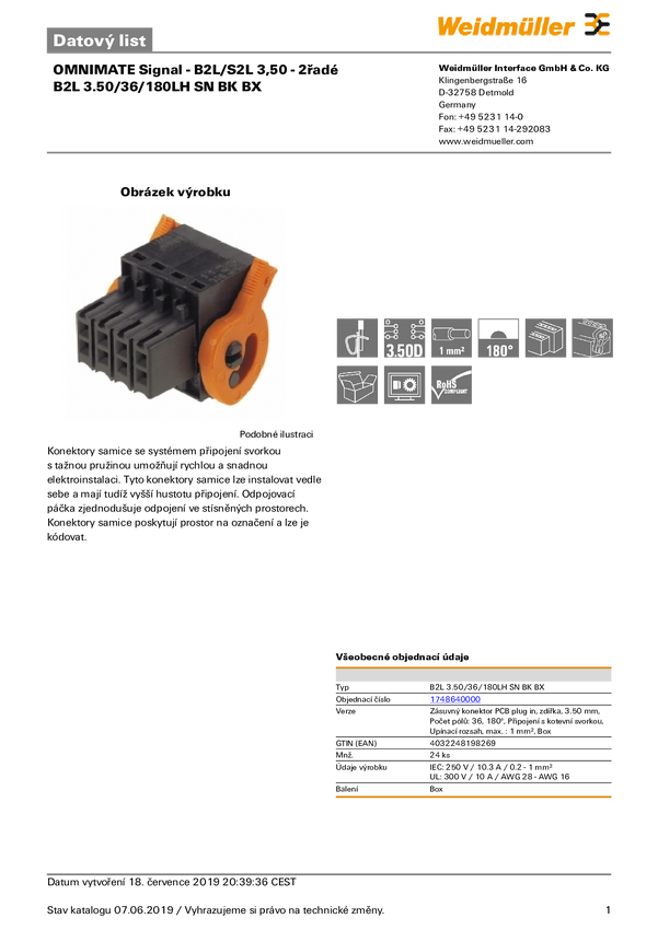 1748640000 Weidmüller 1748640000 Obudowa złącza pin żeńskiego na kabel B2L 3.50/36...