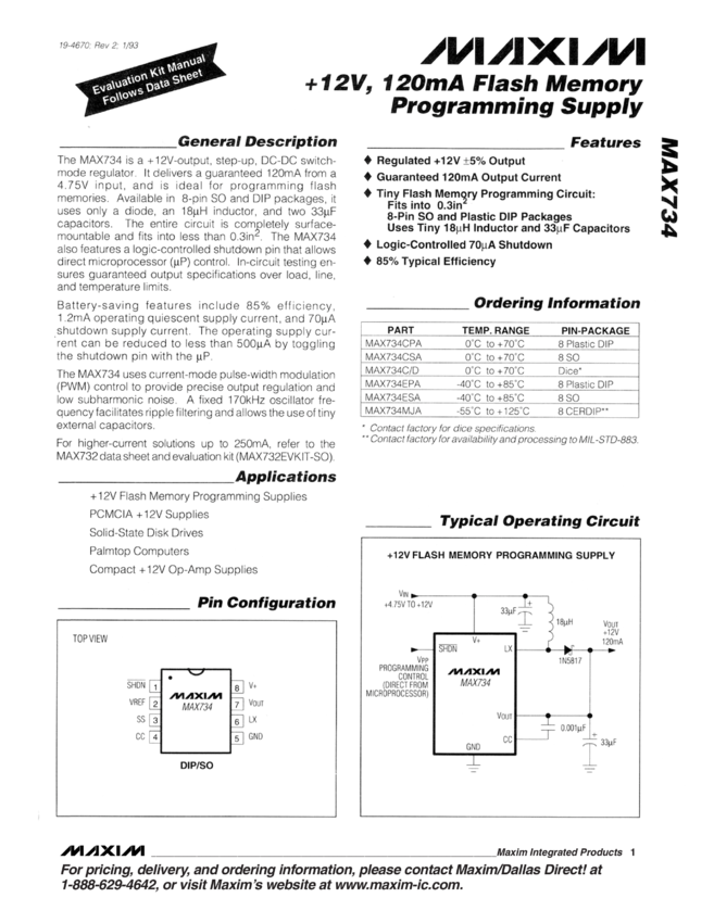 MAX734 12V, 120mA Flash Memory Programming Supply