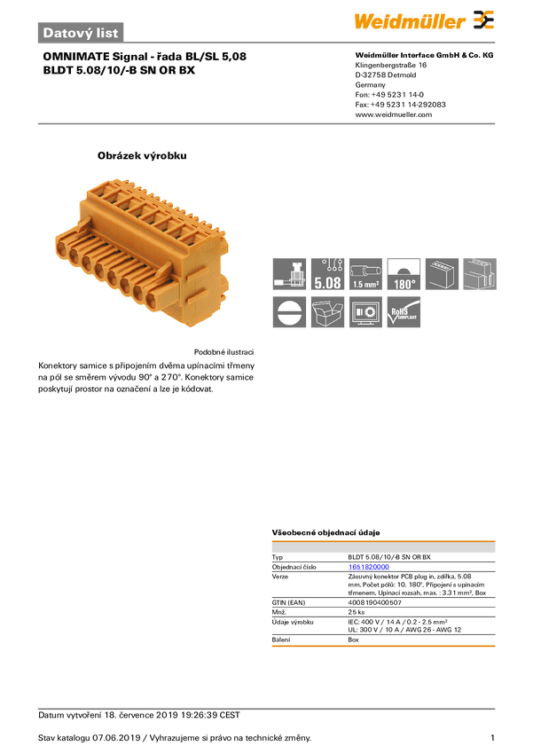 1651820000 Weidmüller Obudowa złącza pin żeńskiego na kabel BL/SL 5.08 Ilość pinów...