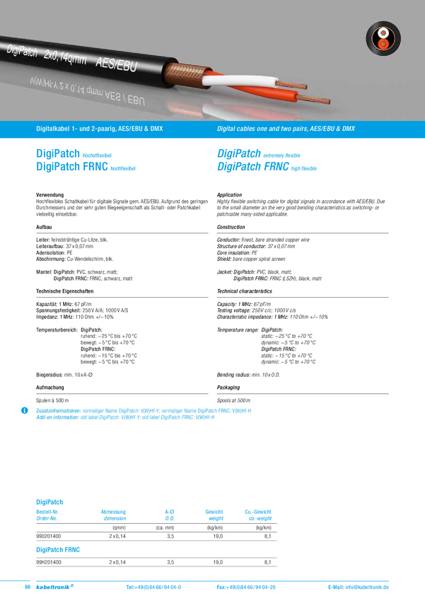 990201400-1 Przewód magistralny Kabeltronik 990201400-1, 2 x 0.14 mm², Produkty w metra...