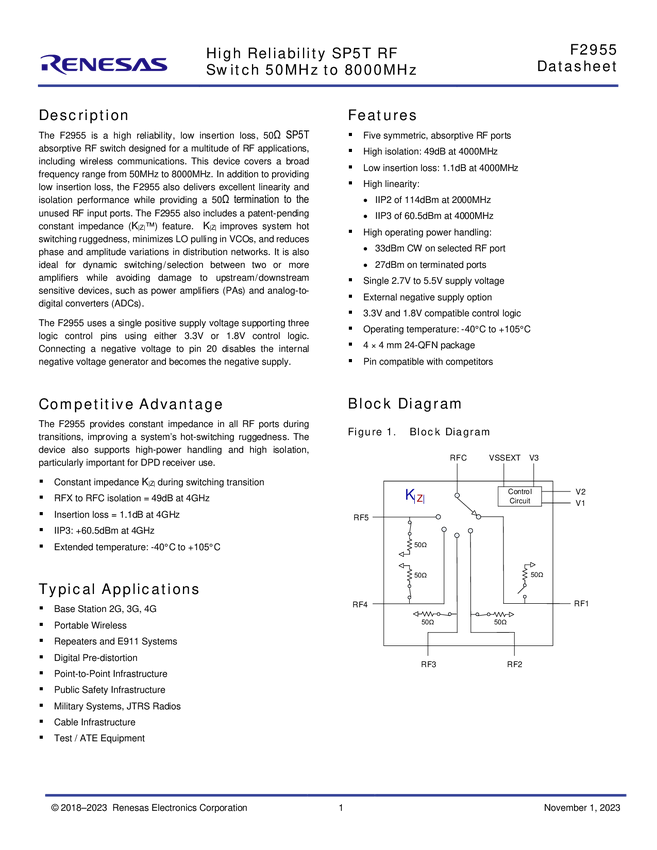 F2955EVB Evaluation board for the F2955 High Reliability SP5T RF Switch