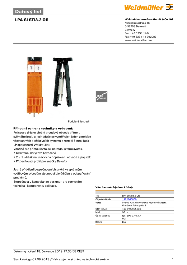 1495060000 Weidmüller 1495060000 Zworka grzebieniowa Ilość styków 1 pomarańczowy 50 sz...