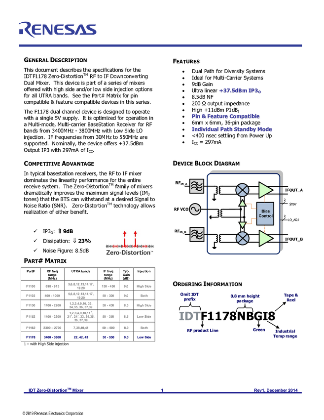 Evaluation Board for F1178 Dual 3.5 GHz Downconverting Mixer