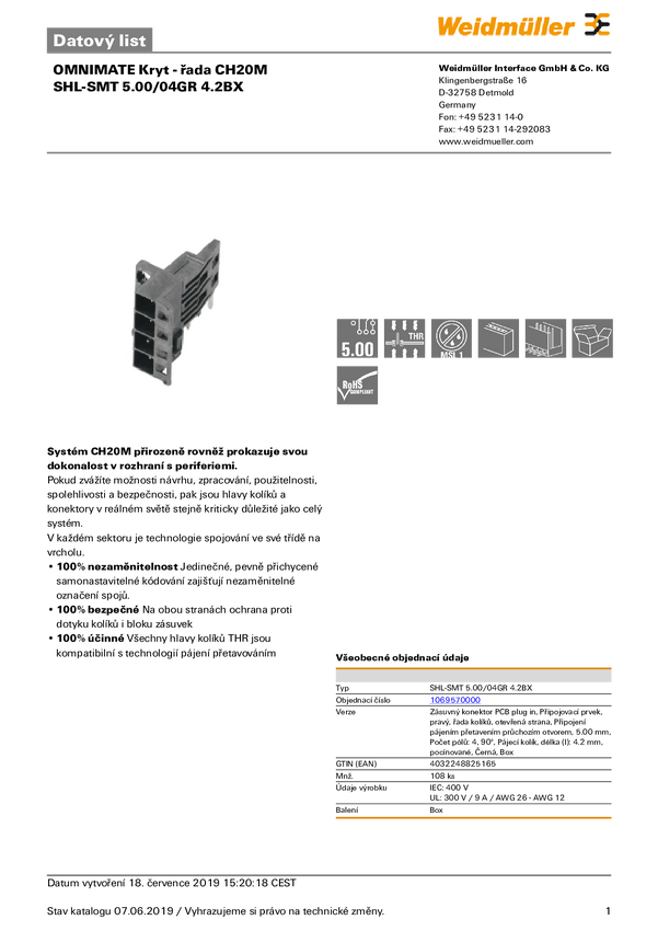 Weidmüller Obudowa złącza pin męskiego na PCB SHL Ilość pinów 4 1069570000 108 szt.