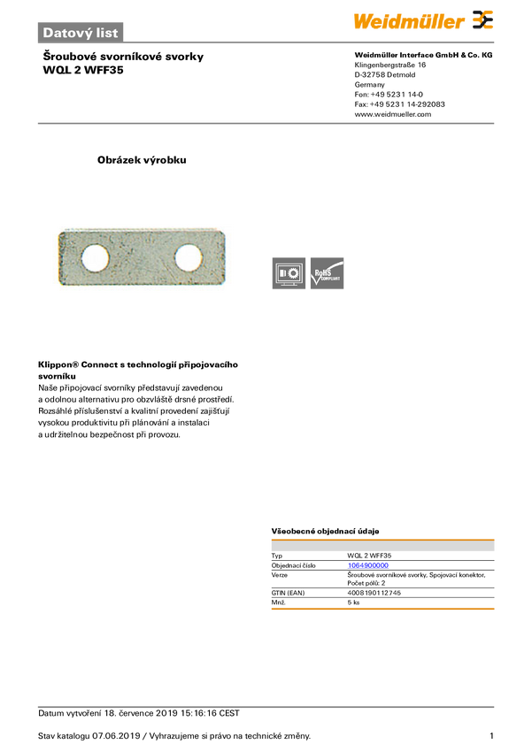 Łącznik krzyżowy Weidmüller WQL 2 WFF35 1064900000, 5 szt.