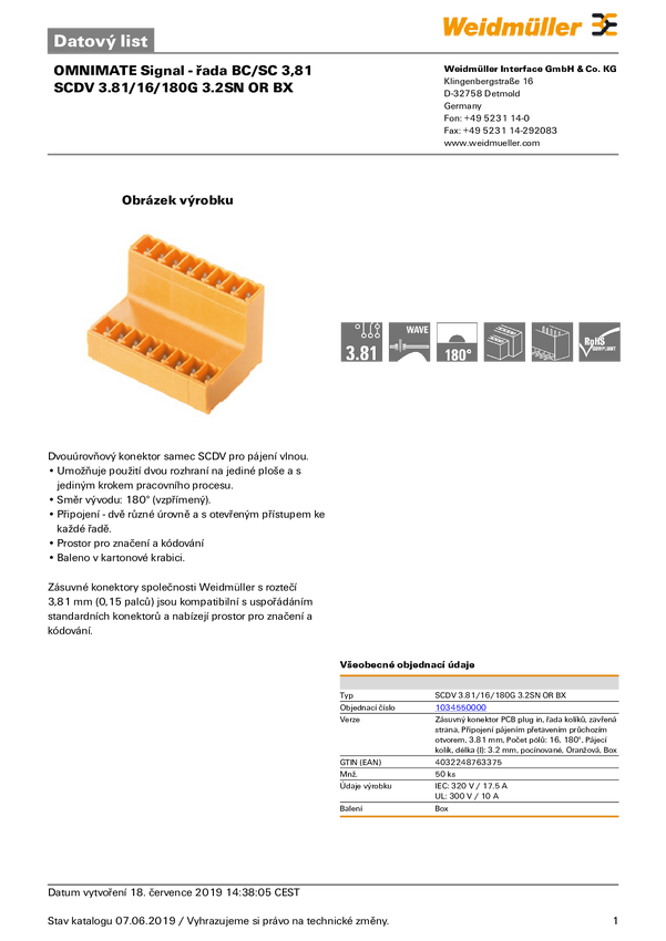 1034550000 Weidmüller Obudowa złącza pin męskiego na PCB BC/SC Ilość pinów 16 Wymi...