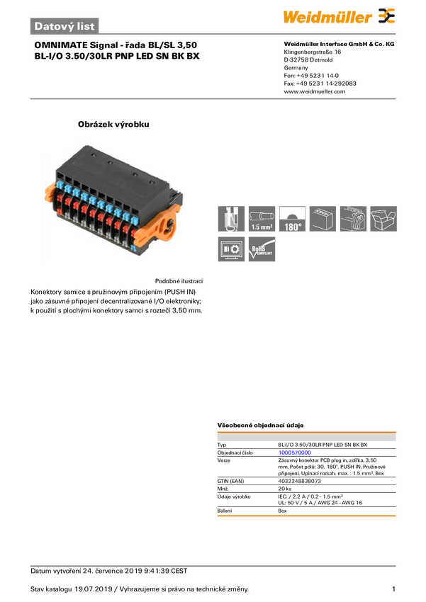 1000570000 Weidmüller 1000570000 Obudowa złącza pin żeńskiego na kabel BL-I/O 3.50...