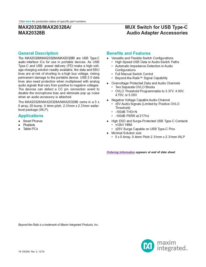 MAX20328A MUX Switch for USB Type-C Audio Adapter Accessories