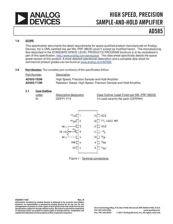 AD585S Aerospace High Speed, Precision Sample-and-Hold Amplifier