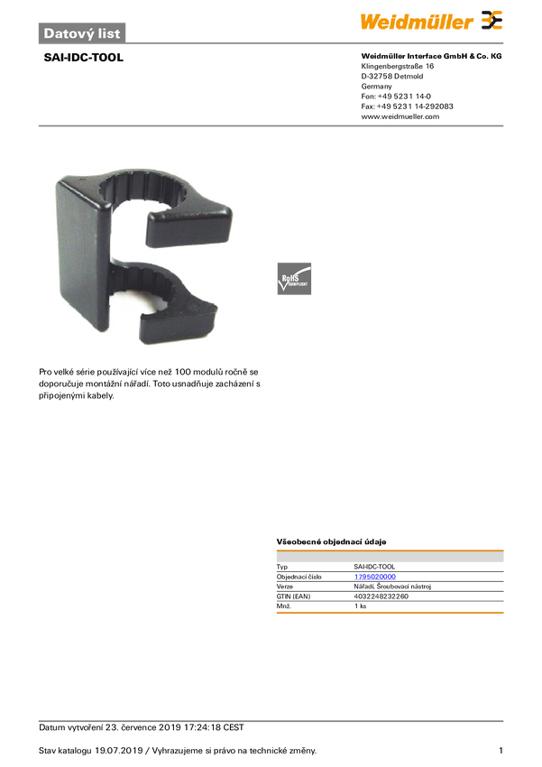 1795020000 Narzędzia do złączy śrubowych Weidmüller 1795020000 SAI-IDC-TOOL, 1 szt.