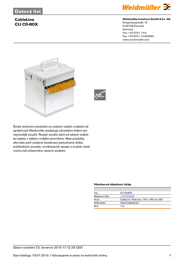 Oznacznik przewodu, Pudełko do sortowania, 247 x 134 mm, blacha stalowa, Kolor: pomarańczowy CLI CD-BOX biały Weidmüller