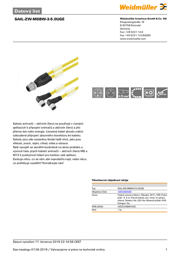 Przewód połączeniowy Weidmüller SAIL-ZW-M8BW-3-5.0QGE 1093260500 1 szt.