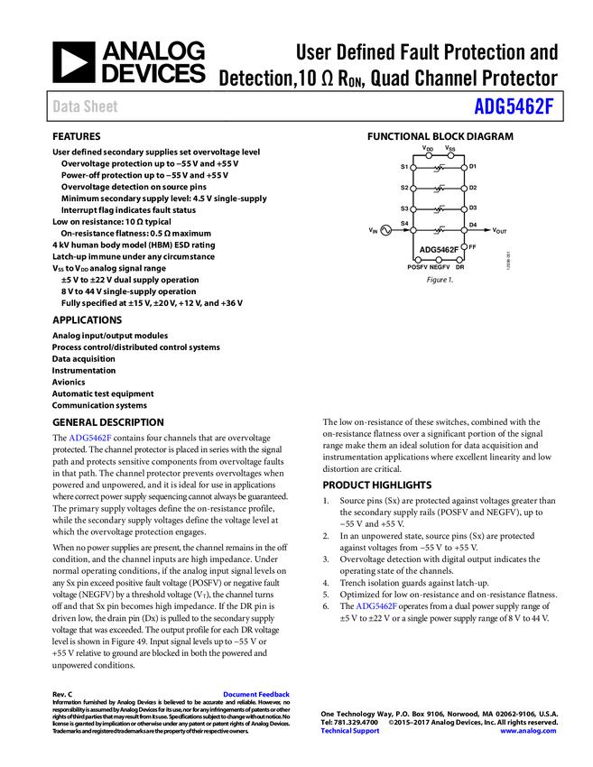 ADG5462F User Defined Fault Protection and Detection, 10 Ω R, Quad Channel Protector