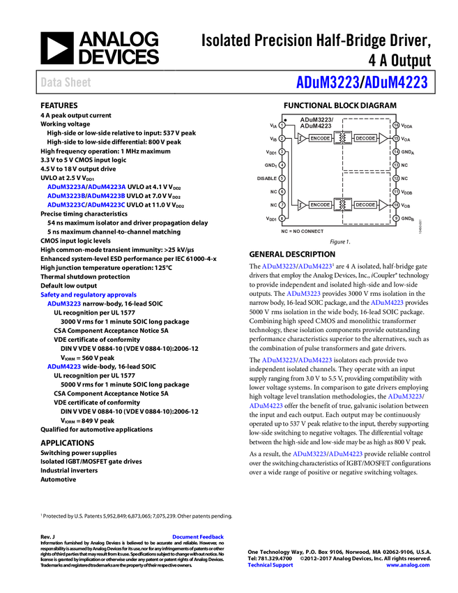 ADUM4223 3 kV rms Isolated Precision Half-Bridge Driver, 4 A Output