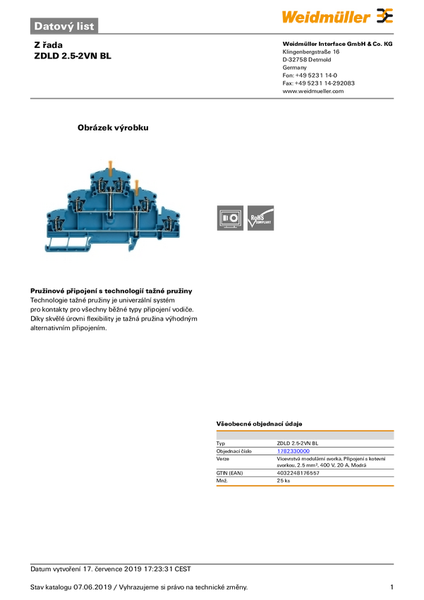 1782330000 Złączka wielopoziomowa Weidmüller 1782330000 sprężynowe 25 szt.